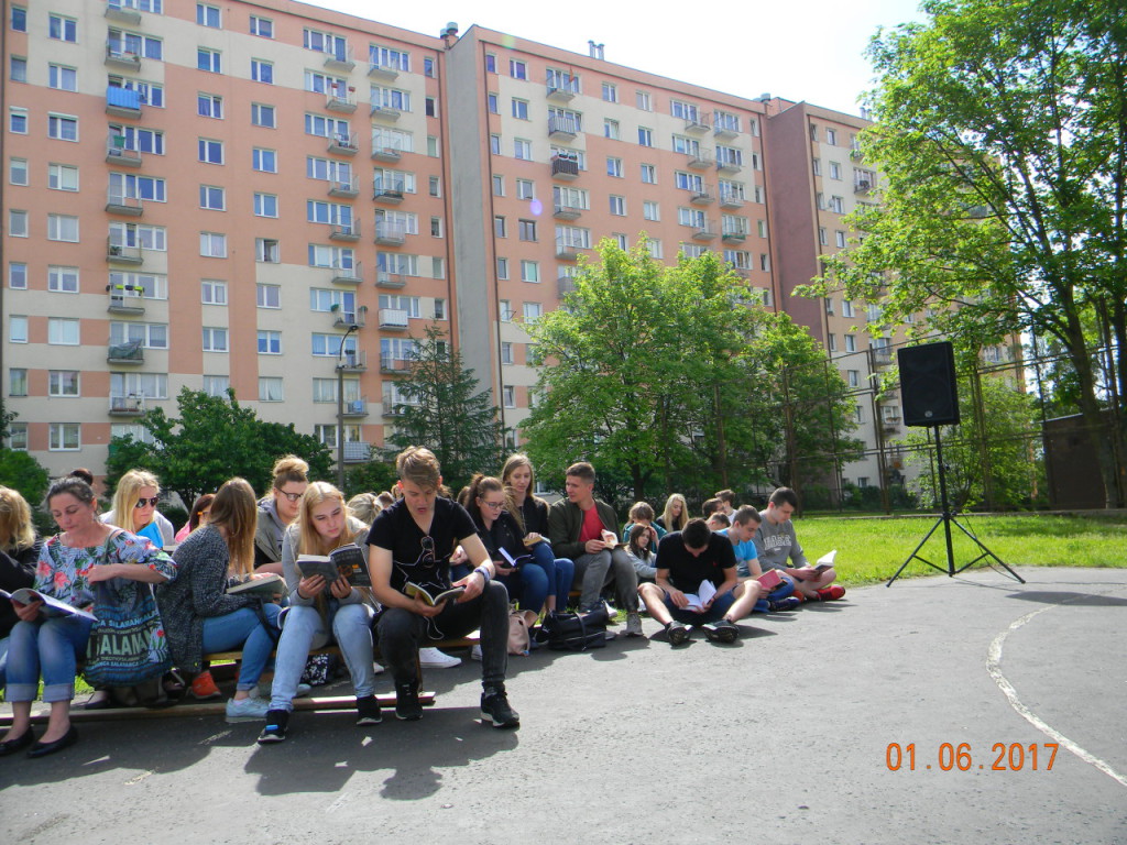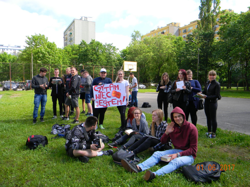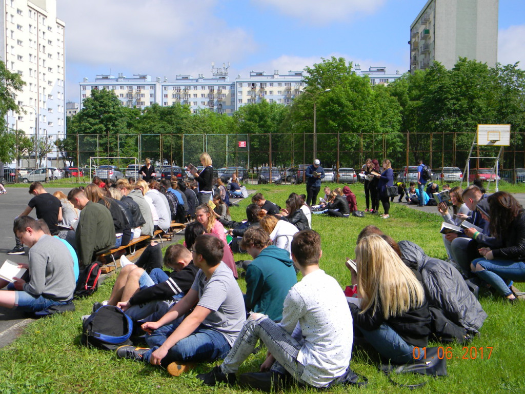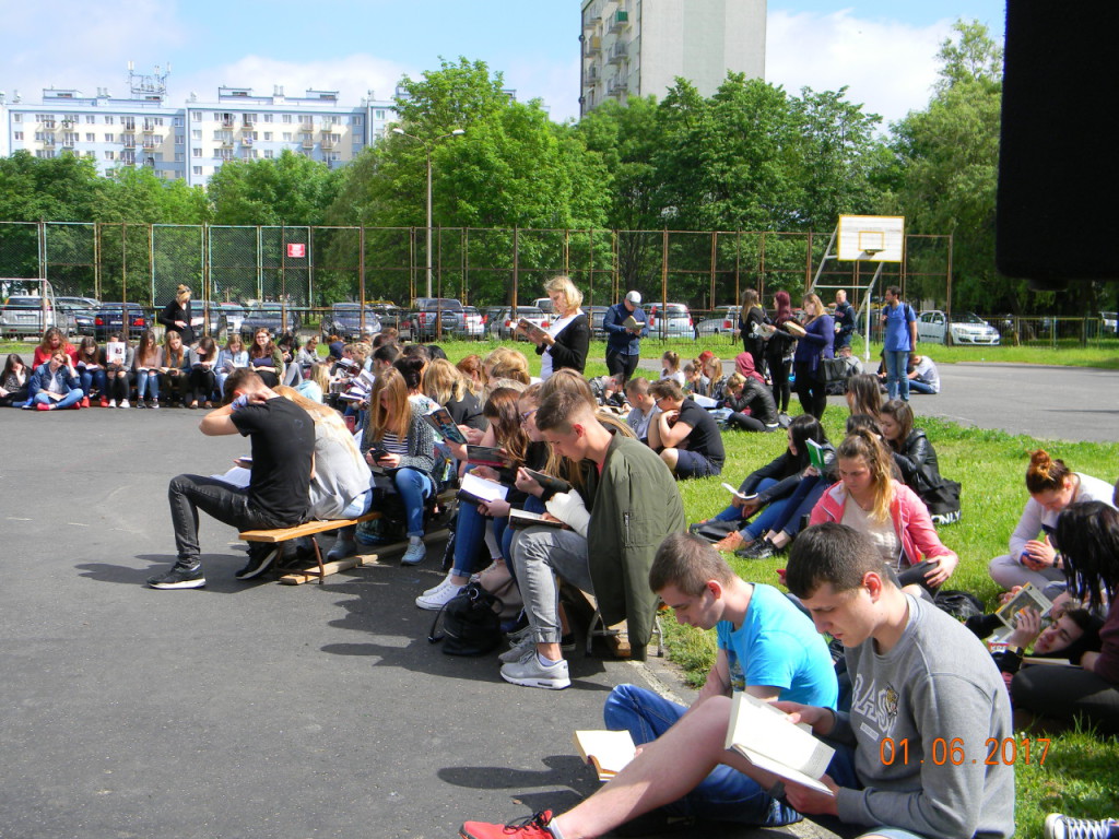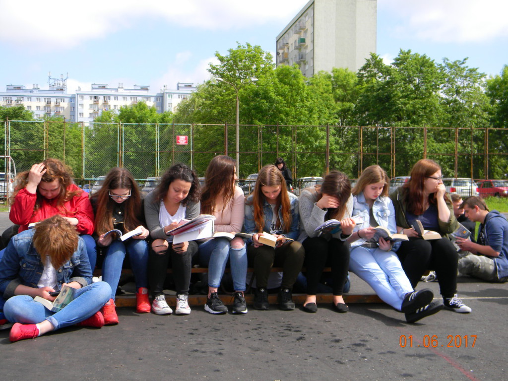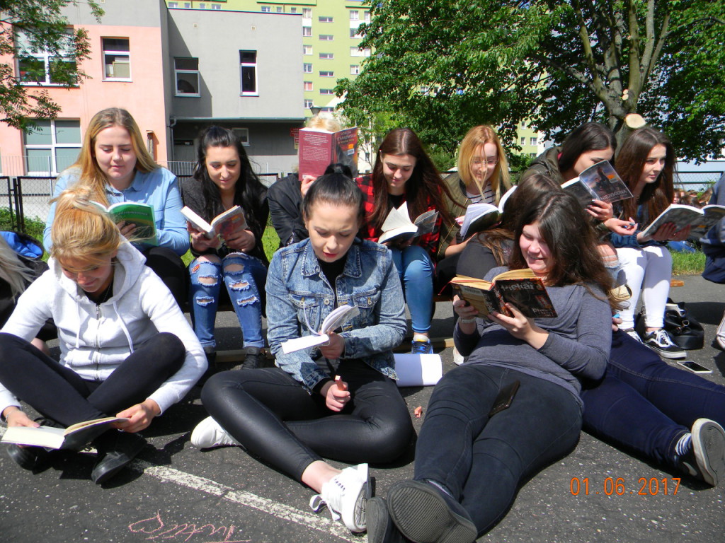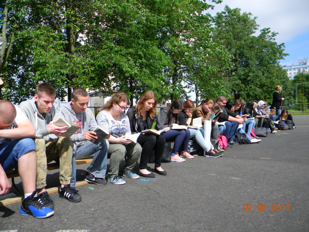 1 czerwca dołączyliśmy do bicia rekordu w czytaniu w ramach ogólnopolskiej akcji „Jak nie czytam, jak czytam”. Nauczyciele i uczniowie szkoły o godz. 10.00 wyszli na szkolne boisko, i przez kilkanaście minut czytali przyniesione przez siebie książki. Każda klasa wykonała na płycie boiska „książkowe graffiti” (hasła promujące czytelnictwo, tytuły ulubionych książek). Cała akcja zakończyła się słodko-owocową niespodzianką z okazji Dnia Dziecka.