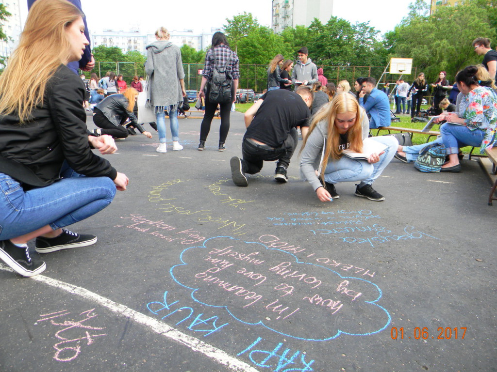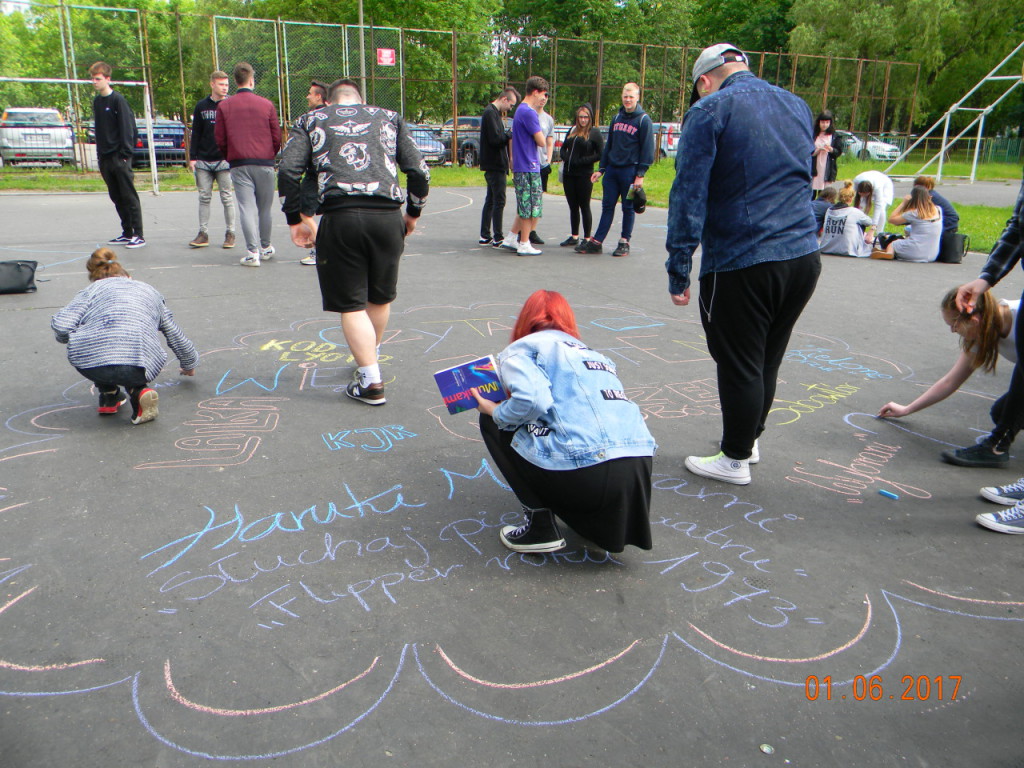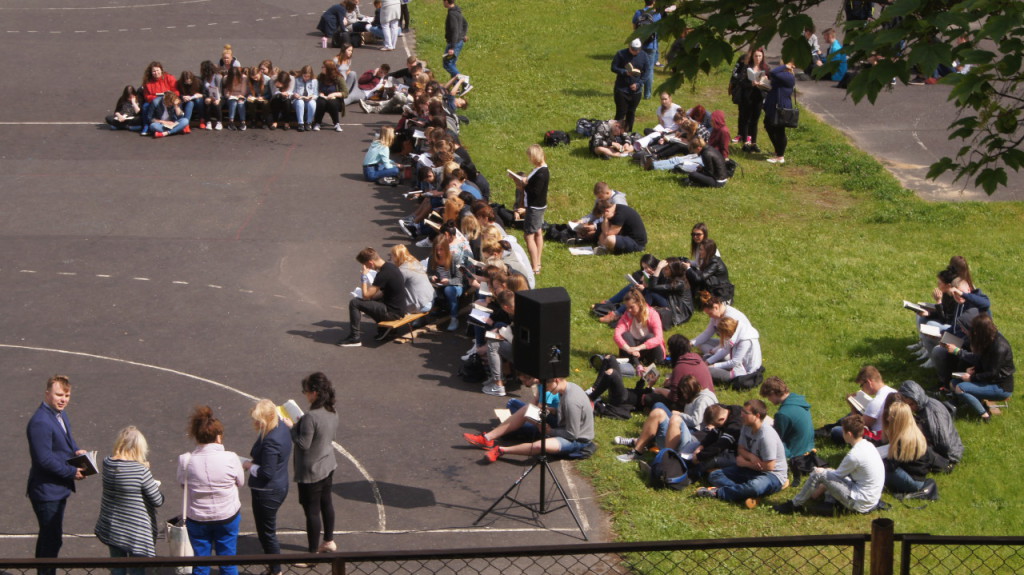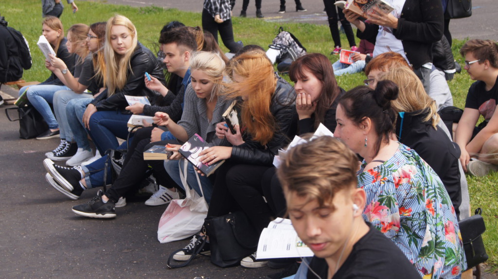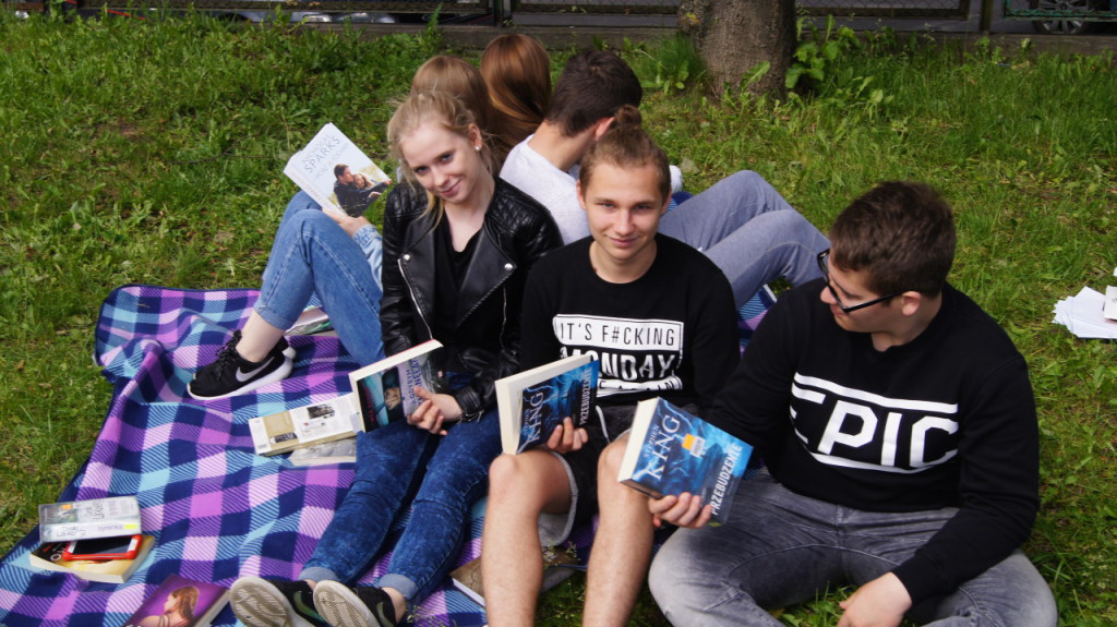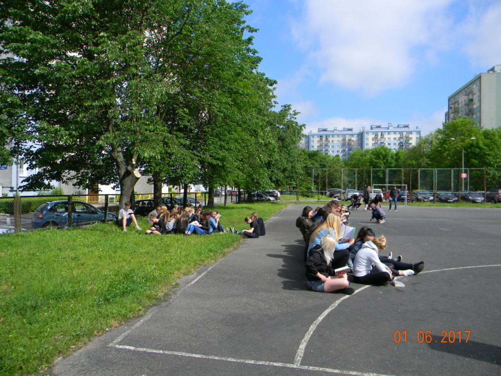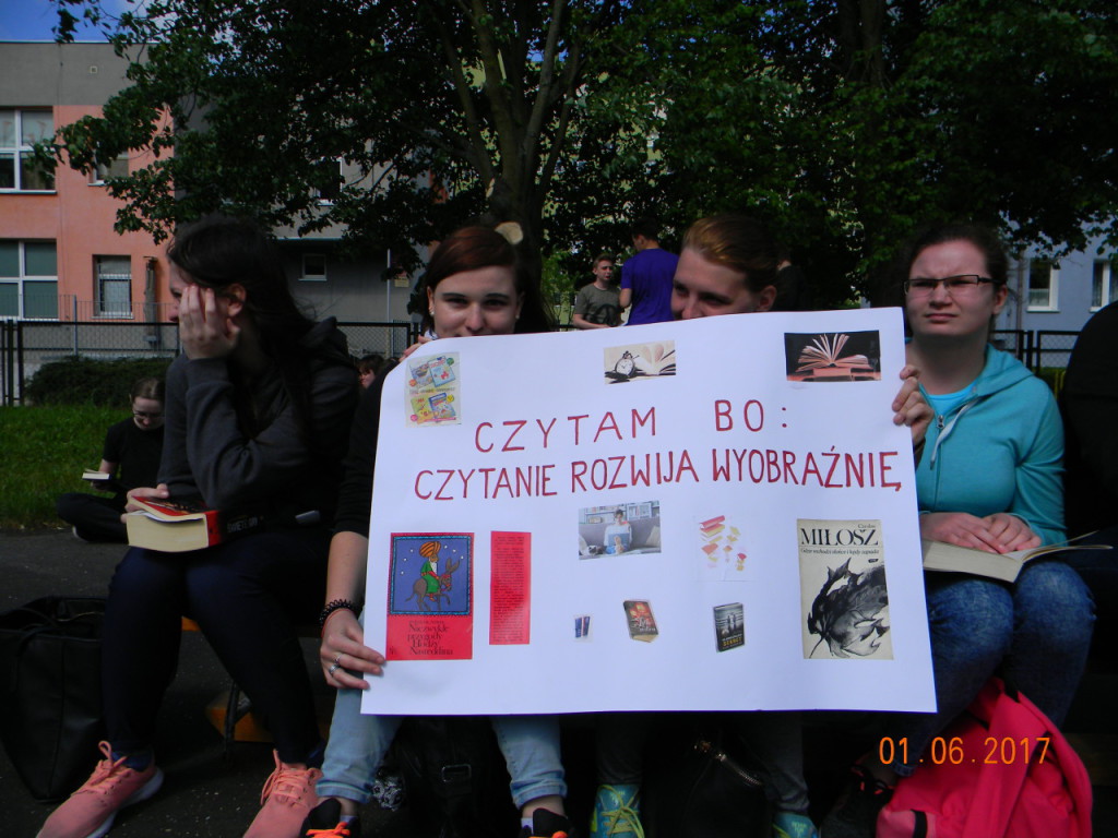 1 czerwca dołączyliśmy do bicia rekordu w czytaniu w ramach ogólnopolskiej akcji „Jak nie czytam, jak czytam”. Nauczyciele i uczniowie szkoły o godz. 10.00 wyszli na szkolne boisko, i przez kilkanaście minut czytali przyniesione przez siebie książki. Każda klasa wykonała na płycie boiska „książkowe graffiti” (hasła promujące czytelnictwo, tytuły ulubionych książek). Cała akcja zakończyła się słodko-owocową niespodzianką z okazji Dnia Dziecka.