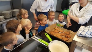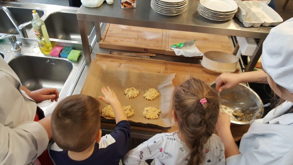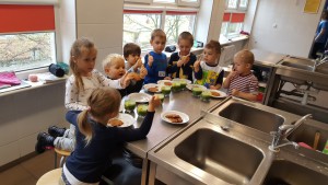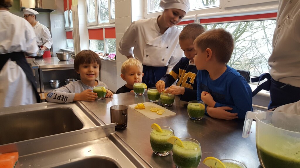W ubiegły wtorek (14.11.2017) naszą szkołę odwiedziły dzieci z przedszkola miejskiego nr 18. Razem z uczniami z klasy 3A sporządzały zdrowe smakołyki: ciasteczka owsiane i koktajl z jarmużem i bananami.