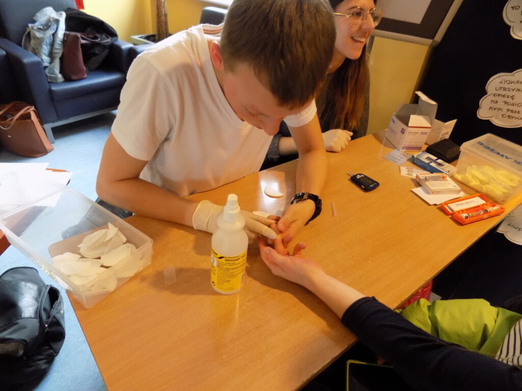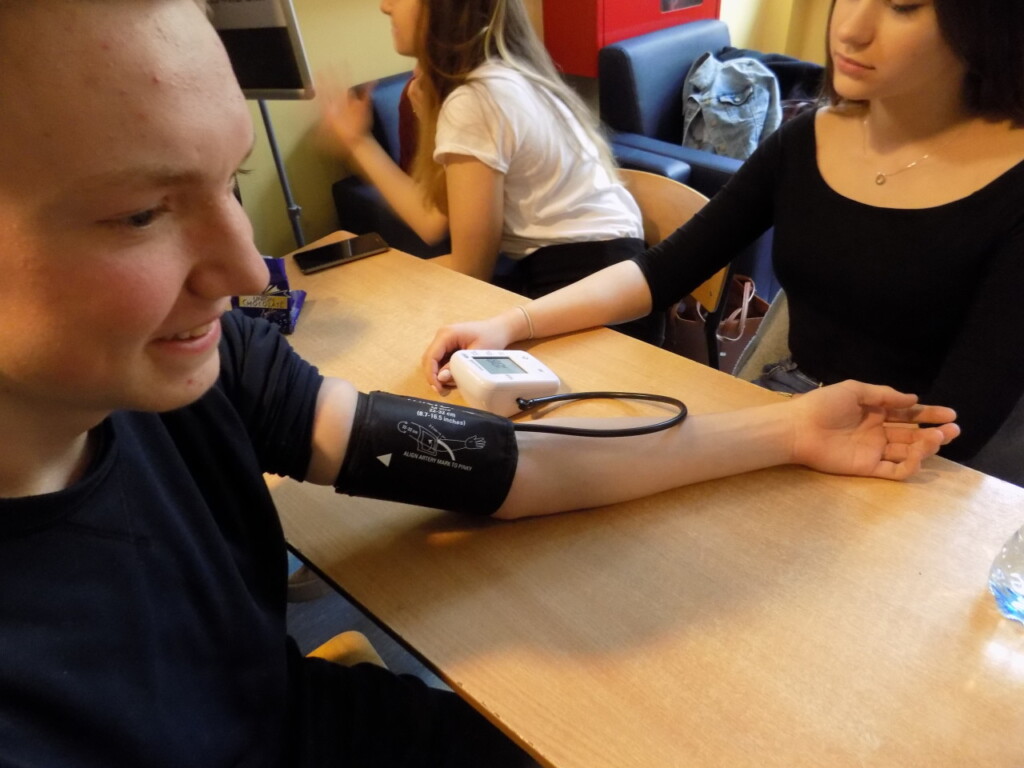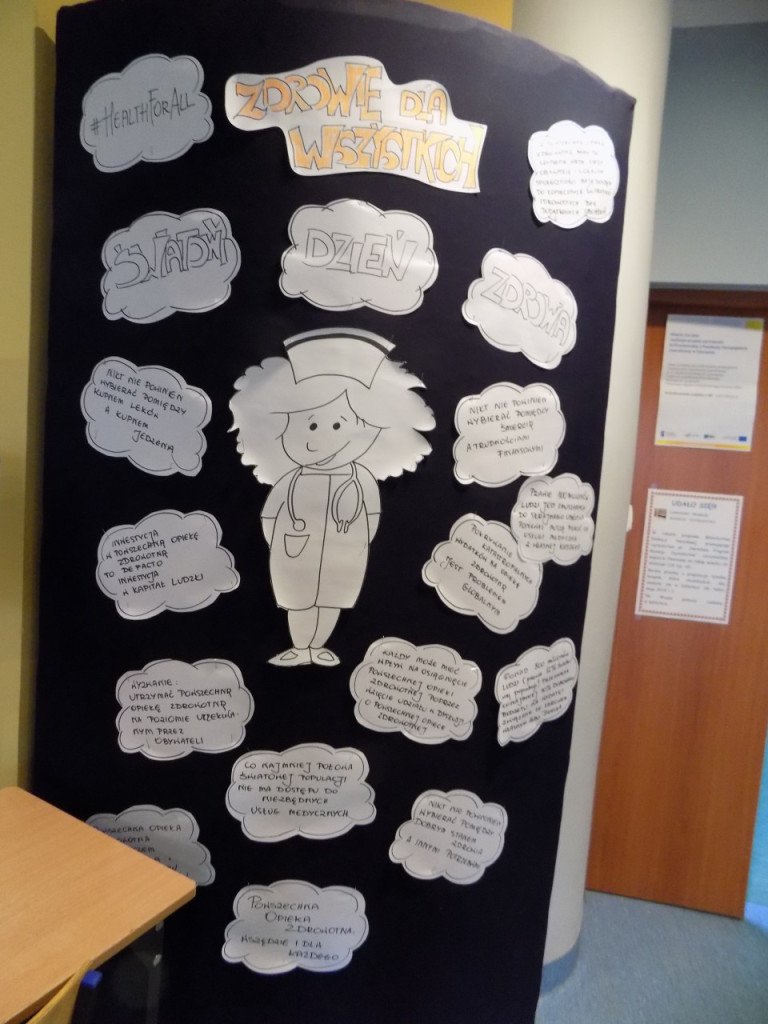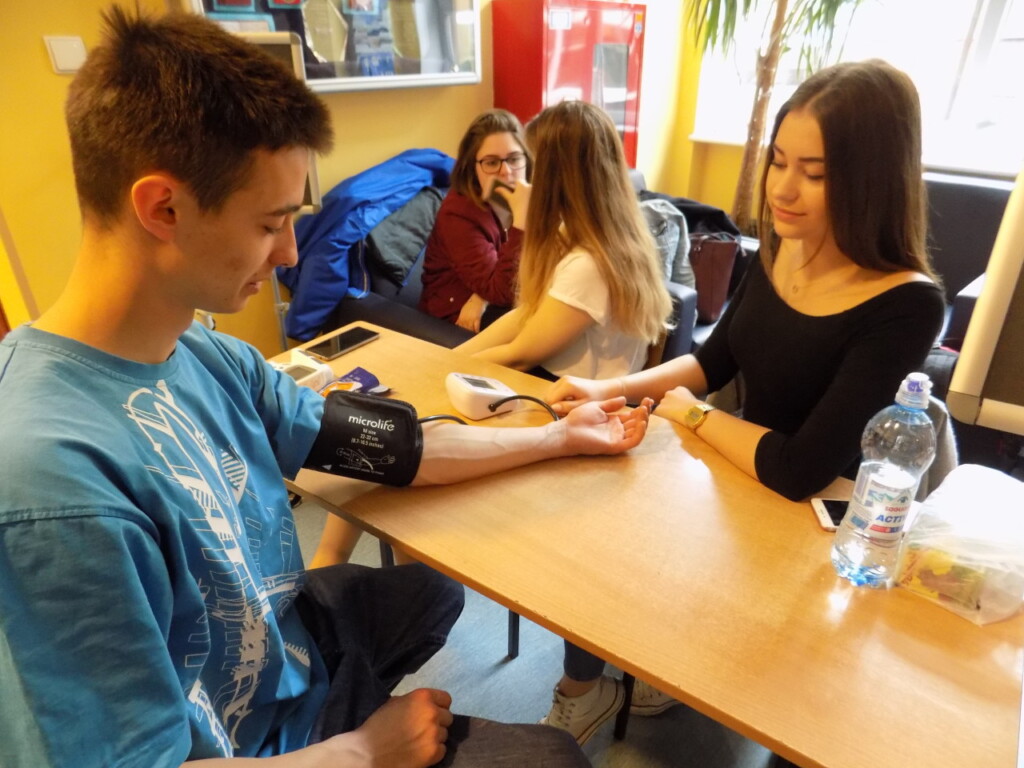 W tym roku Światowy Dzień Zdrowia obchodziliśmy pod hasłem ZDROWIE DLA WSZYSTKICH. W ramach akcji można było skorzystać z wielu atrakcji, m.in dokonać: pomiaru ciśnienia, pomiaru cukru we krwi czy zbadać wzrok. Dla zmęczonych i zestresowanych uczniowie „Medyka” oferowali masaże oraz usługi kosmetyczne. Jak co roku uczniowie mogli oddać krew, w tym roku oddaliśmy ok. 12 litrów. W ramach Światowego Dnia Zdrowia odbył się również konkurs kulinarny zorganizowany przez ZSG oraz Smaczną Dietę. Wszystko przebiegało w przyjaznej i zdrowej atmosferze.