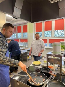 Wczoraj, 21 marca 2023 r., z inicjatywy Rady Rodziców i z pomocą Samorządu Uczniowskiego, zostały zorganizowane warsztaty kulinarne pod hasłem WIOSENNE SMAKI W GASTRO. Pod czujnym okiem mistrzów kuchni pasjonaci oryginalnych smaków uczyli się przyrządzać m.in. caviche z łososia na sałatce z zielonymi szparagami, piklami z czerwonej cebuli i emulsją pietruszkowa czy balotynę z pstrąga w szynce parmeńskiej faszerowaną kaszą oraz muffiny jajeczne z marchewką i jarmużem.