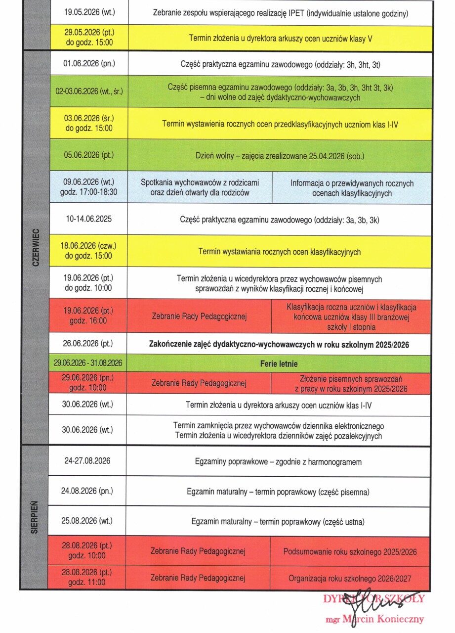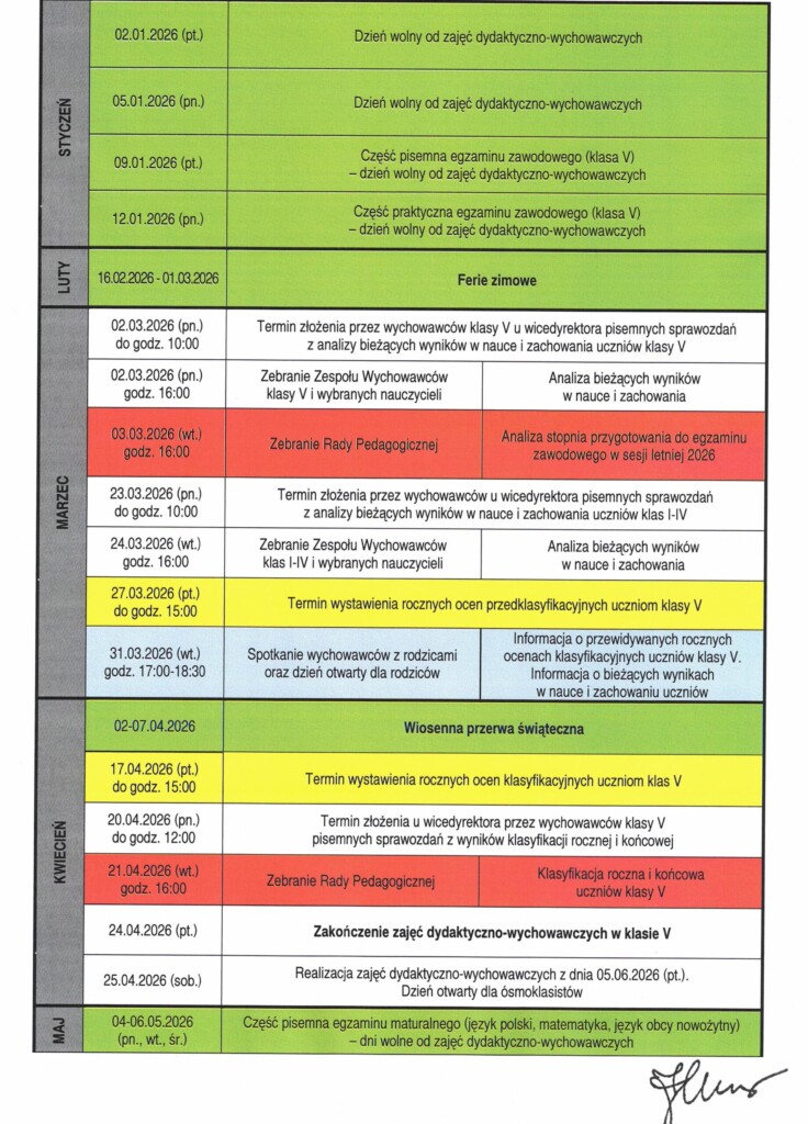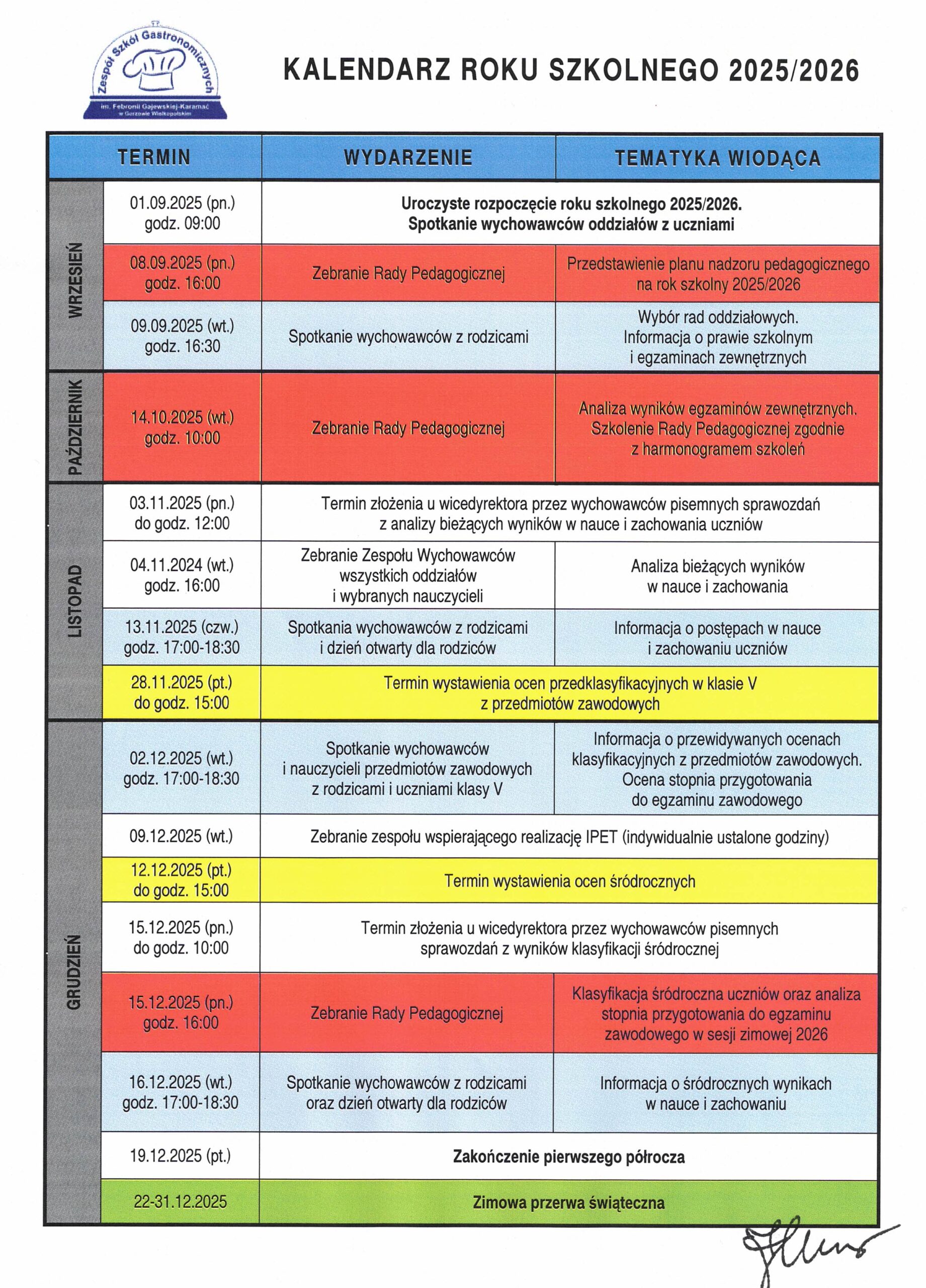 KALENDARZ ROKU SZKOLNEGO 2025/2026