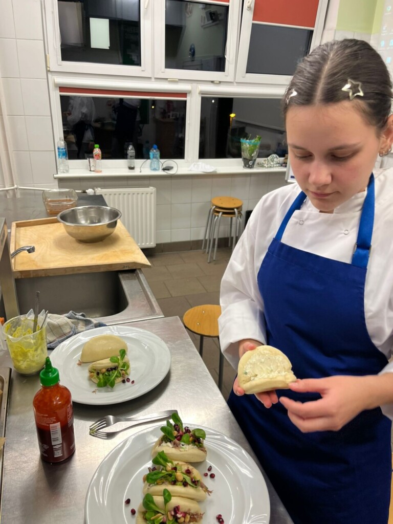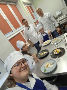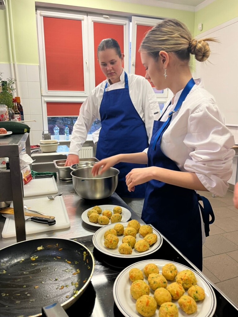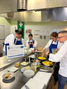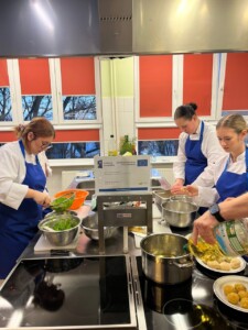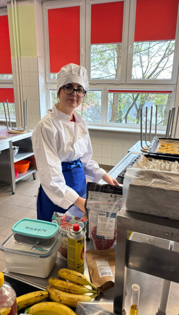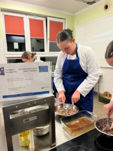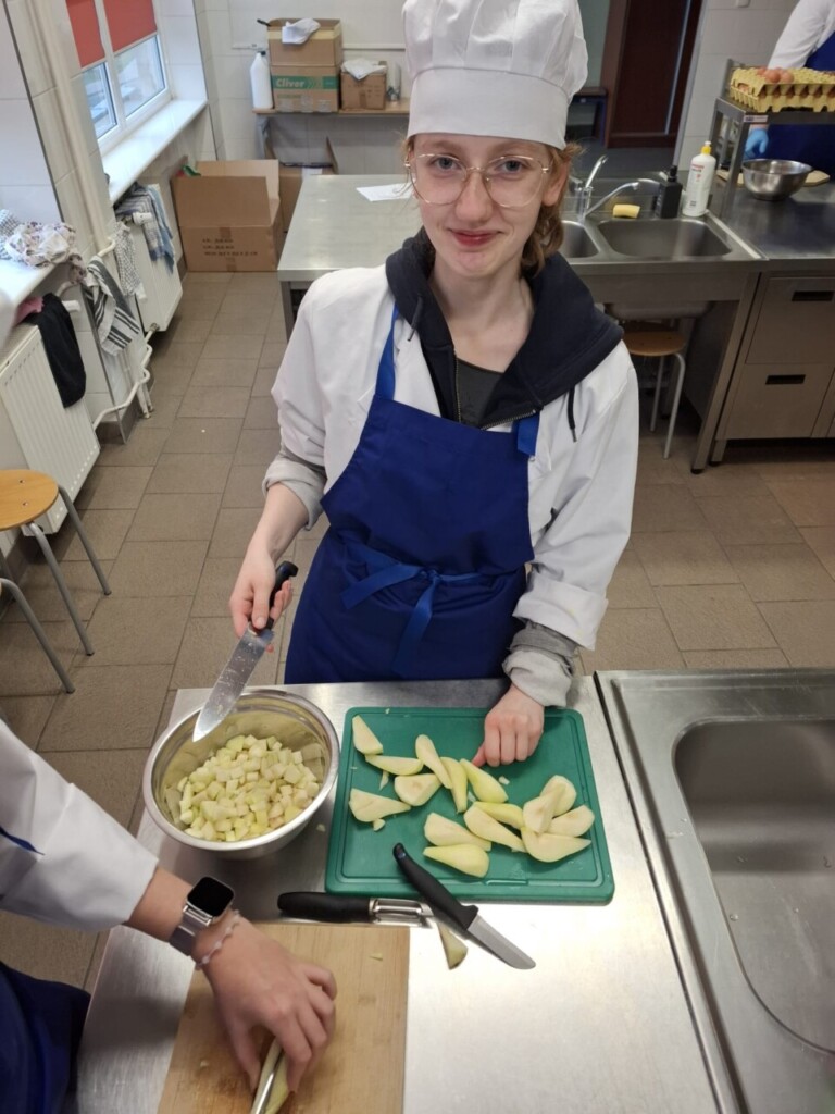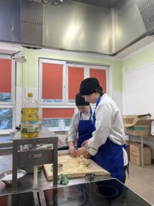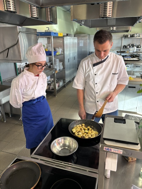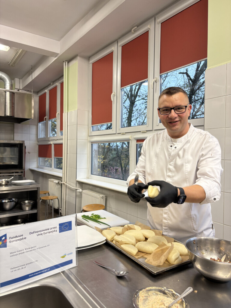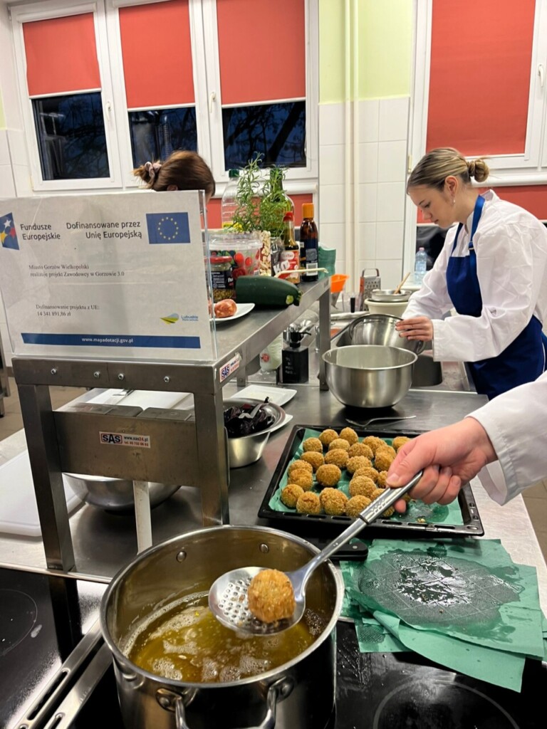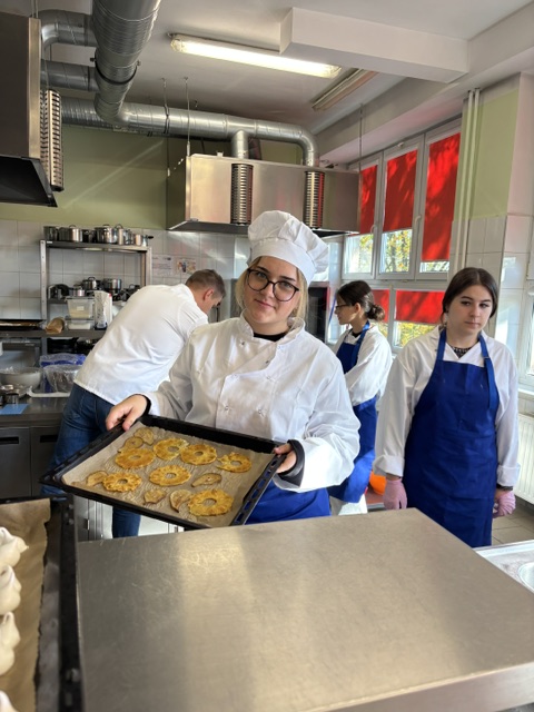 Podczas warsztatów kulinarnych uczestnicy zakwalifikowani do udziału w spotkaniach prowadzonych przez pana Michała Rejniaka – szefa kuchni i nauczyciela przedmiotów zawodowych, zmierzyli się z wymagającą tematyką pod hasłem „Kuchnie różnych narodów”.