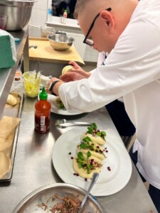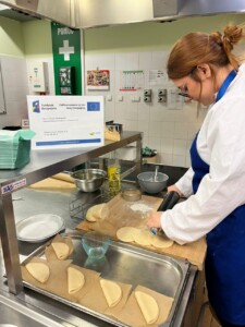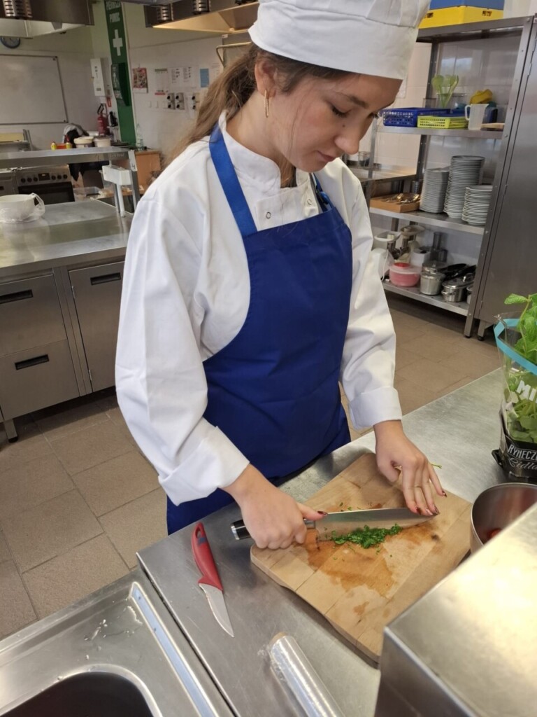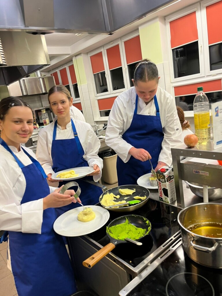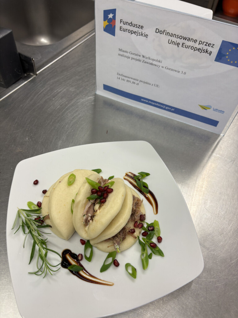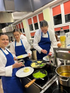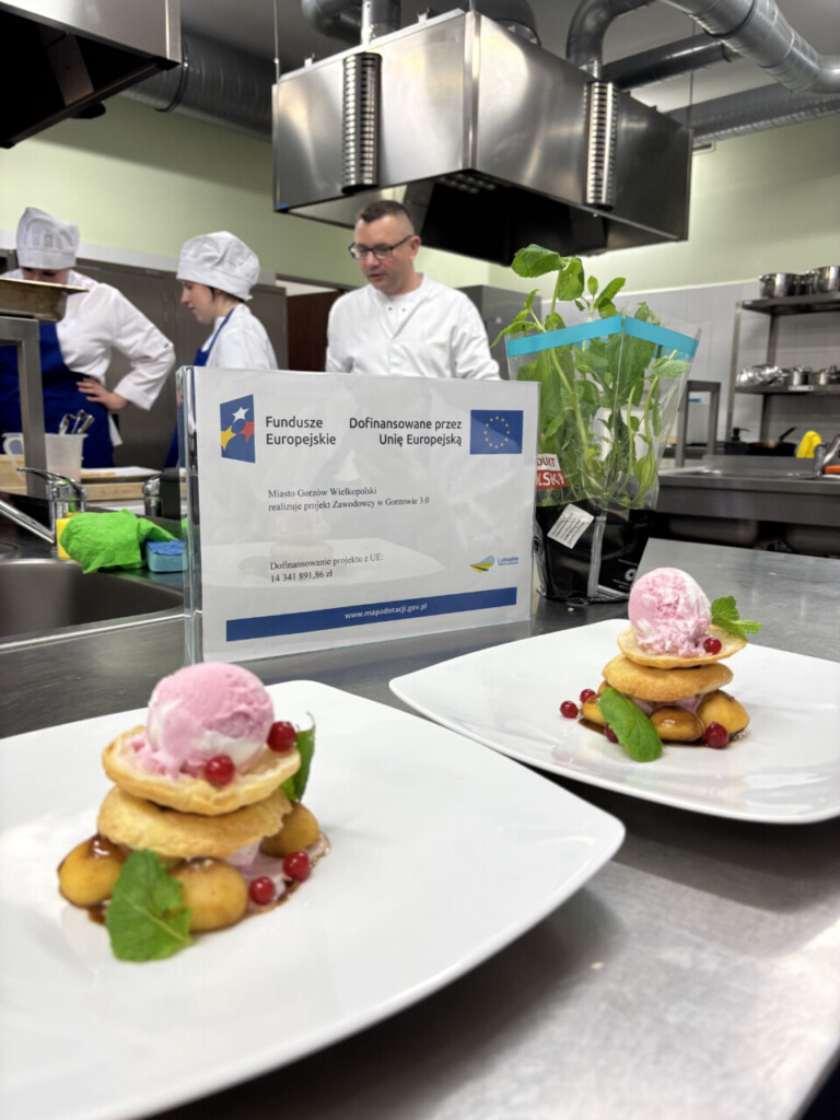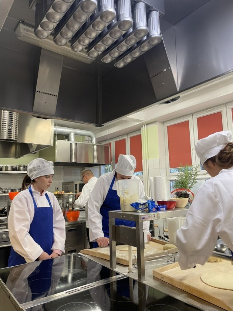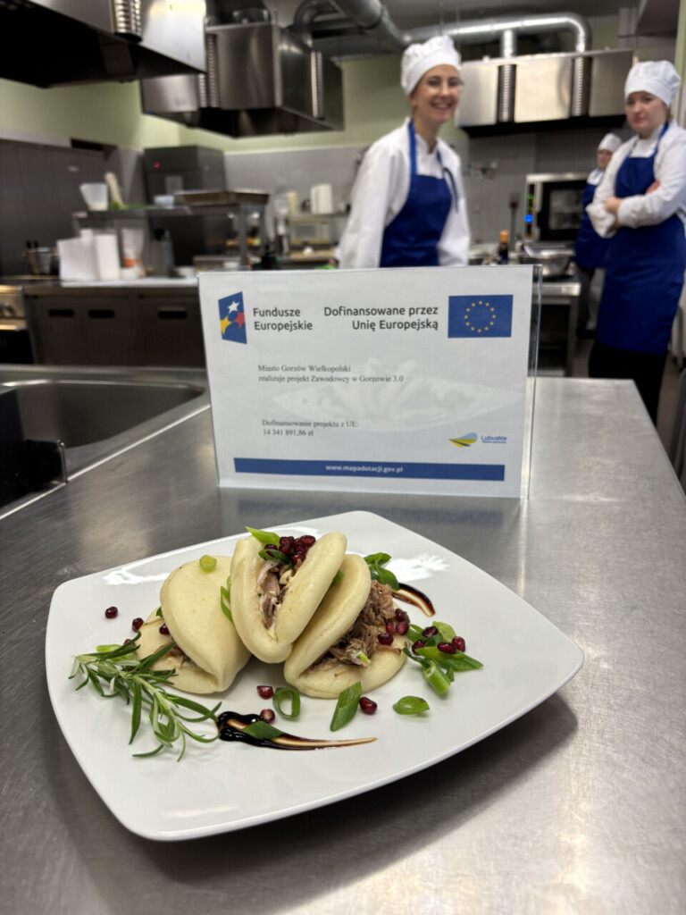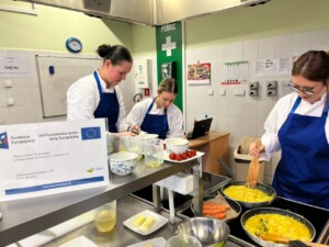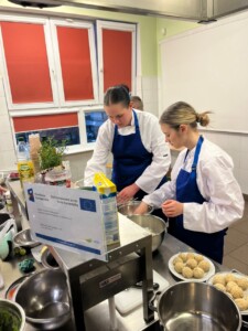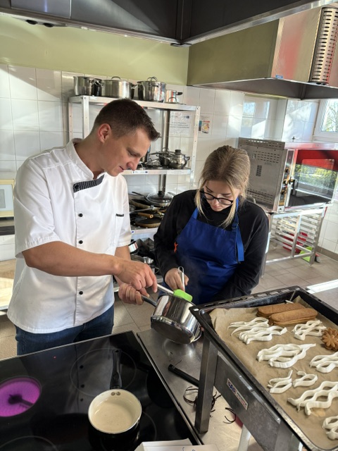 Podczas warsztatów kulinarnych uczestnicy zakwalifikowani do udziału w spotkaniach prowadzonych przez pana Michała Rejniaka – szefa kuchni i nauczyciela przedmiotów zawodowych, zmierzyli się z wymagającą tematyką pod hasłem „Kuchnie różnych narodów”.